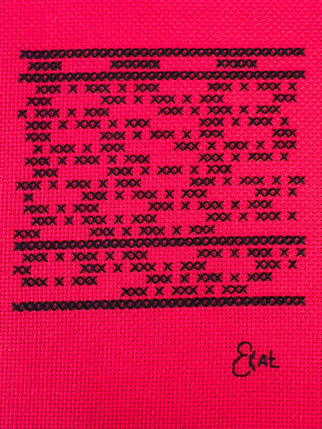 Chaque BRODÈME présente des poèmes et des mots brodés au point de croix en code Morse,